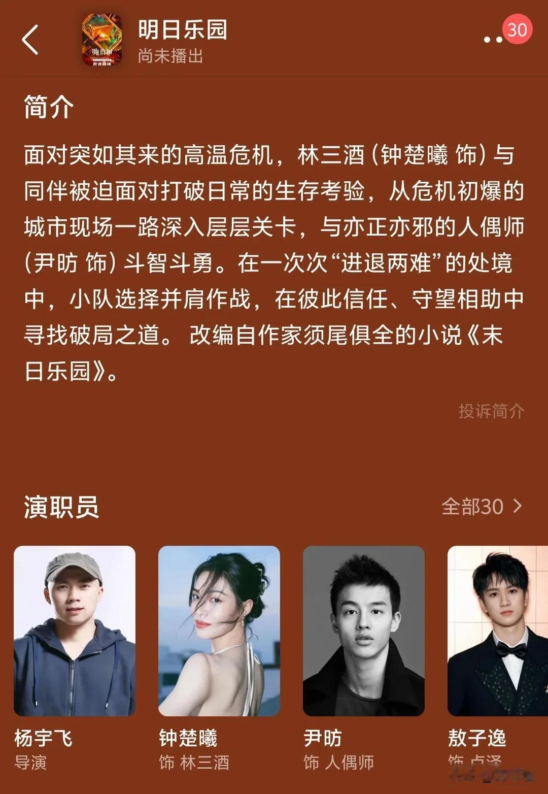 《明日乐园》,头部无限流大ip,由钟楚曦尹昉领衔主演的腾讯S+大剧。
