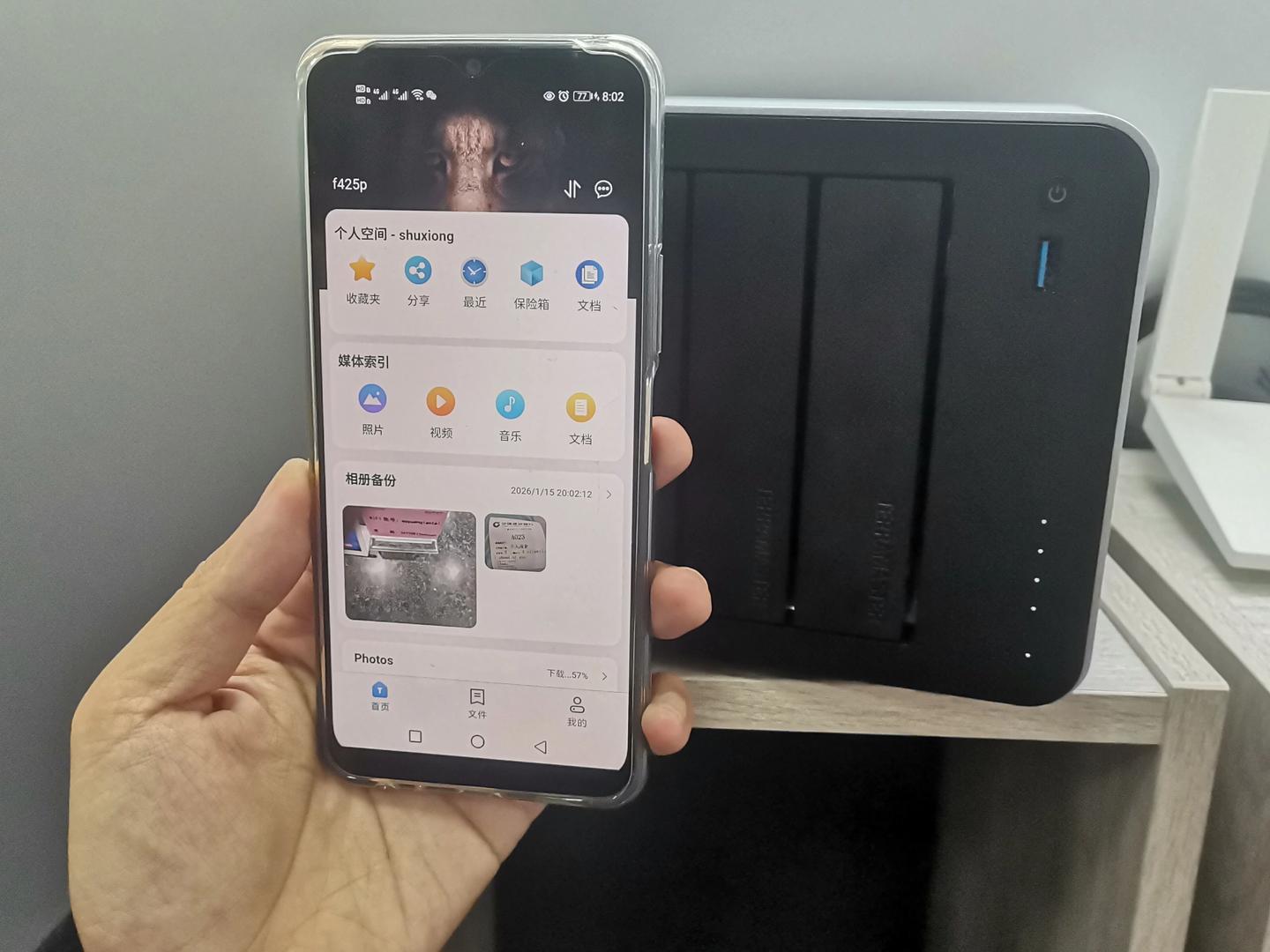干金属加工这行,天天跟几个GB 的 CAD 图纸、高清产品实拍图打交道,之前用的入门 NAS,打开大图纸要等十几秒,同时传文件还会卡死。这台 F4-425 Plus 的 3 个 M.2 SSD 插槽,真的是比同类产品多了个 “杀手锏”,直接配两块的 M.2 SSD 组建 RAID 5,既双重保证数据安全不丢失,又能当高速缓存。