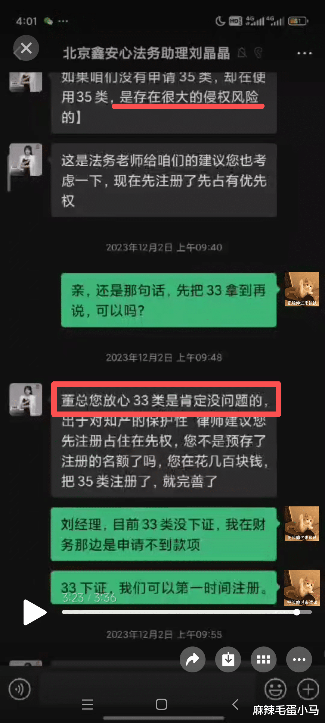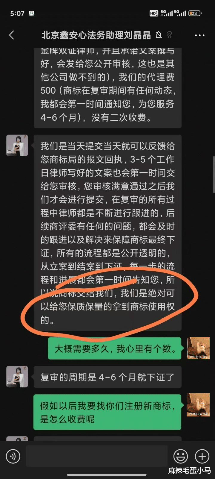 首先,该公司在接洽及推广过程中,多次使用“商标交给我们,我们是绝对可以给您保质保量的拿到商标证使用权的…您放心吧,肯定没问题”等具有强烈诱导性与确定性的表述,反复强调其服务的“绝对成功”与“保证效果”。