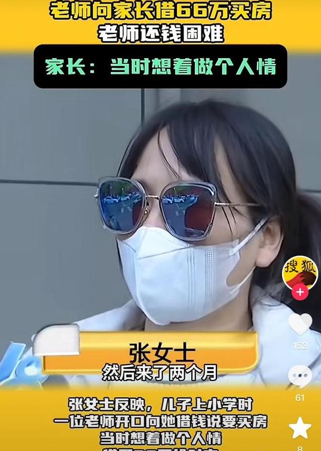 在张女士的“牵线搭桥”下,另外两位家长也慷慨解囊,分别借出了20多万和10多万元,这位教师最终从三位家长手中“筹集”到了66万元巨款。