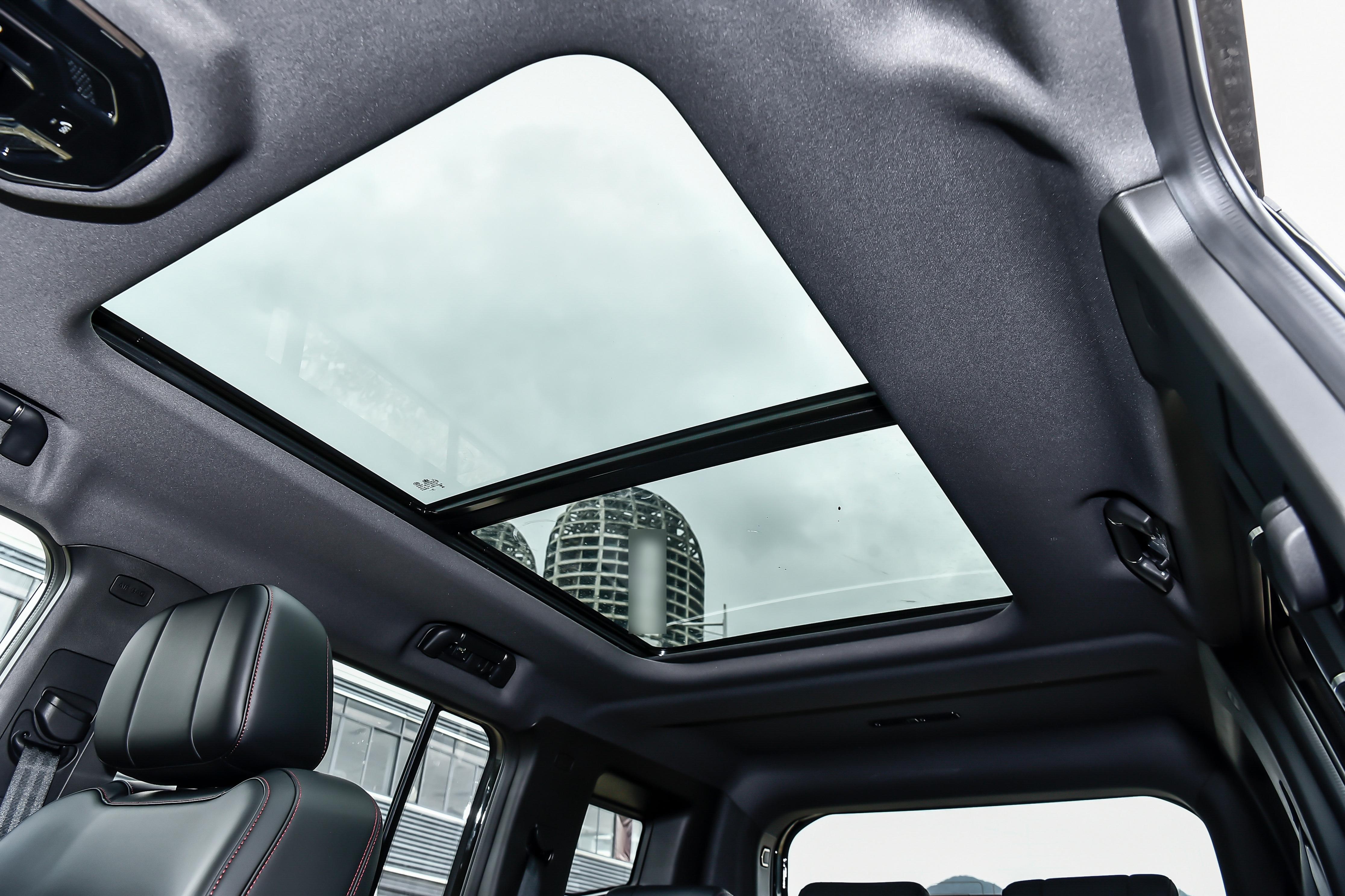 车身侧面是这款车的颜值核心,平直的腰线从车头贯穿至车尾,搭配悬浮式车顶和外扩轮眉,硬派气息扑面而来。值得一提的是,轮眉提供车身同色和黑色塑料两种选择,后者更耐剐蹭,对于经常走非铺装路面的用户来说再合适不过。车门采用传统式把手,这一点必须点赞 —— 相比隐藏式把手,它不仅操作更直接,还能避免冬季冻结的尴尬,实用性拉满。车身尺寸方面,燃油版长宽高达到 4785/2006/1880mm,混动版略有增加,车长可达 4810mm,2800mm 的轴距则为车内空间打下了坚实基础。