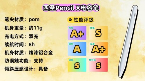 在同价位的电容笔中,西圣电容笔的配置堪称顶级,书写体验几乎与Apple Pencil相当,高达98%的还原度。它搭载了高灵敏度芯片,在国内的电容笔中,书写流畅度属于领先水平。笔尖方面,西圣采用了与Apple Pencil相同材质的POM笔尖,具有卓越的导电性和耐磨性。而且,它支持倾斜压感功能,配合流畅的书写体验,完美满足了画画用户的需求,能够适应不同绘画风格的表现。