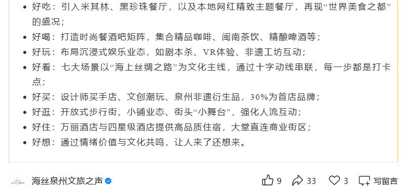 项目商业定位为“海丝文化会客厅、品质消费新领地”,以“文化+艺术+非遗+生活”为统一调性,打造一个“八好”空间。