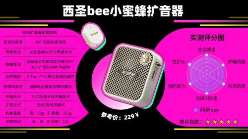 同时创新搭载360°全指向无线麦克风+16芯全频巨声单元,哪怕边走边讲,声音依旧洪亮穿透、细节清晰,从“听得清”跃升到“传得远”。更关键的是,独家HiTone™人声动态增益引擎与全链路抗啸叫算法双核协同,使得在 音质解析力、抗啸叫稳定性、低延迟传输率等核心维度,均处于行业顶尖水准。以下图是各大热门新闻网对西圣bee的评价: