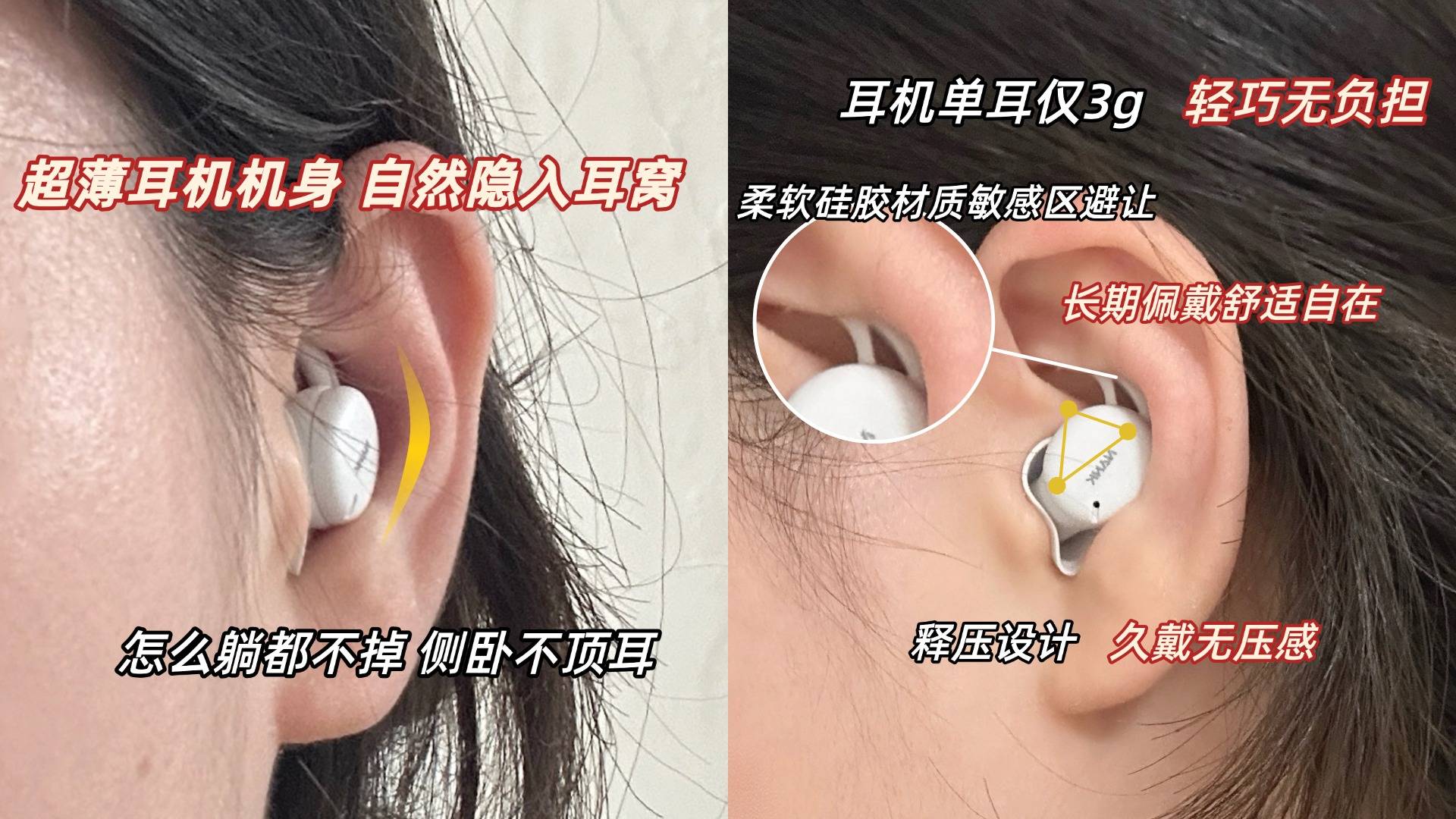 2、动态释压设计很加分:睡眠耳机需要整晚佩戴,如果压力集中,很容易耳胀或不适。挑选时要看耳机是否有分压或动态释压设计,把压力分散到耳廓不同部位,长时间戴也不会累,翻身入睡更安心。