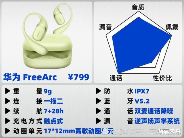 性能配置:这款耳机支持蓝牙 5.2、IPX7 防水和 AI 降噪,灵犀天线还能增强连接稳定性,7+28h 的续航也能满足日常使用需求。但 799 元的售价下,蓝牙版本相对较旧,续航比起其他开放式耳机也稍短一些,配置性价比不算突出。它更适合华为生态用户,对续航和蓝牙版本要求较高的用户则需要慎重考虑。