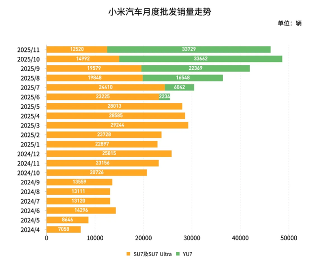 10月份,交付4.8万多台,11月份交付4.6万多台,小米目前累计交付50多万台,创造了全球新能源汽车交付纪录。