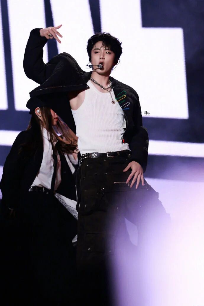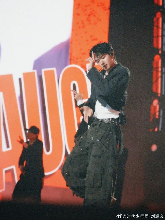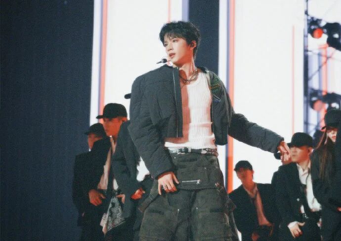 街头潮的冷冽从不是 “堆狠款撑气场”,是薄肌贴锐衣、松廓裹紧劲,越不刻意炫潮,越能戳中 “冷冽街头感” 的核 —— 刘耀文这波新年音乐会造型,把 Rick Owens 的锐、廓形夹克的松,裹着自己的薄肌骨感,舞台上的 SAUCE 劲儿,全是 “形里藏劲” 的高级潮。