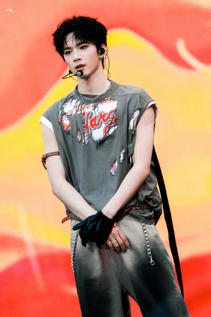 这组造型的妙,从不是 “穿了多狠的街头款”,是让锐衣、松廓都顺着自己的薄肌骨感长 —— 年轻爱豆的街头潮,不用堆狠款炫潮,只要 “形里藏劲、锐松互衬”,就能戳中冷冽街头感的核。