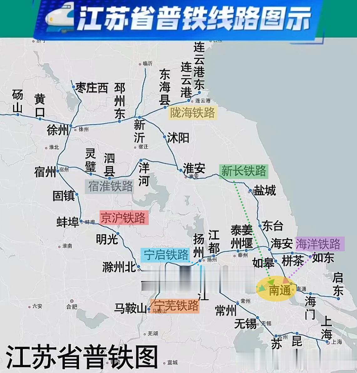 江北的五条普铁中,一共有三条都和南通有关。