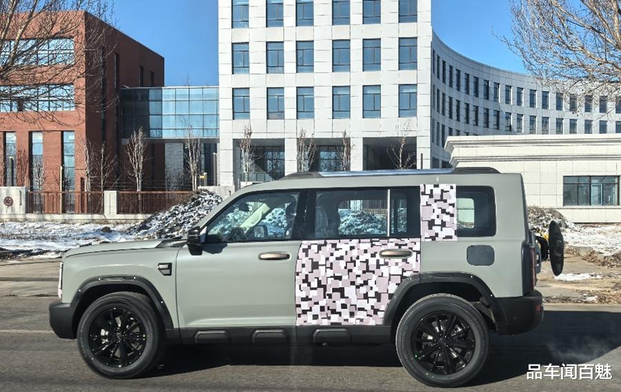 车侧一面,乍看之下与现售猛龙PHEV并无二样;但实际上,为了不让其营造出车身加长后的不协调感,新车会在C柱增加一块盖板。且搭配其“方盒子”造型车身和粗壮侧裙的三块隆起结构,似乎还能带来更为极致的个性化硬派属性。此外,依照申报信息显示,新车将具备4792(带备胎4912)/1950/1886(1905)mm的车身三围以及2米85的轴距,相较于现售猛龙PHEV版,长度与轴距均有112mm上调。