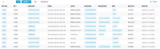 在透明加密的基础上,安得和众进一步整合内容管控与行为审计能力,形成“加密+管控+追溯”三位一体的防护闭环: