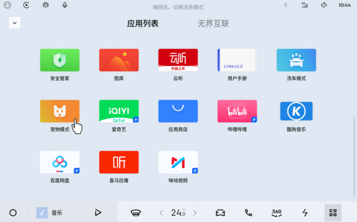 场景模式的优化则让出行体验更富人文关怀,其中宠物模式的升级格外引人注目。针对养宠车主携带宠物出行的需求,宠物模式可在车主临时离车时,自动维持车内适宜的温度与空气循环,同时通过车机界面实时反馈车内状况,确保宠物在车内的舒适与安全,有效解决了用户携宠出行的后顾之忧。这一功能的完善,彰显了领克对用户多元化出行需求的深刻洞察,让智能科技在高效实用之余,更承载了人性化的关怀。