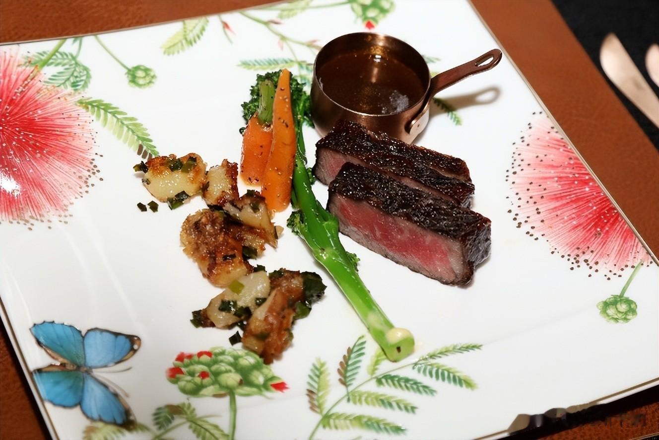 主菜是两种烹饪哲学在巅峰的对话与致敬。周俊雄师傅的 「风干和牛西冷」 运用干式熟成技艺,使得牛肉的风味得以浓缩,肉质更为柔嫩,佐以经典扒房胡椒汁,风味集中而富有层次。钟锦尚师傅则奉上宴席硬菜—— 「头手四头鲍·鲍汁扣」 ,严选优质鲍鱼,遵循传统古法,以老鸡、排骨、瑶柱等食材精心熬制鲍汁,经长时间小火慢煲,使鲍鱼充分吸收汤汁精华,口感软糯弹牙,咸鲜之中回甘悠长,体现了中式宴席菜品的匠心与功底。