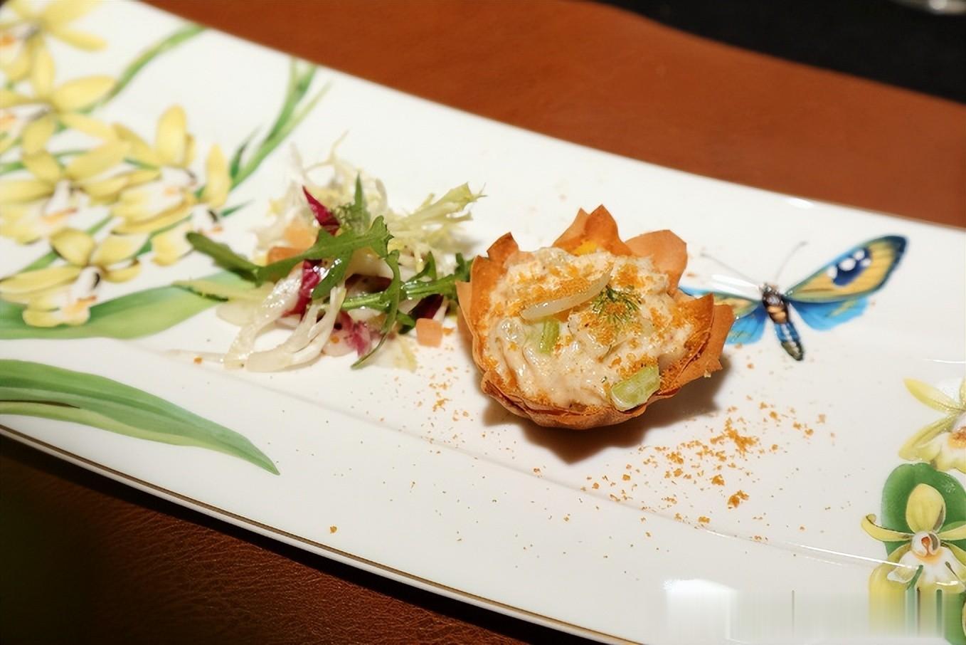 海鲜环节彰显了双厨对风味平衡的不同追求。周俊雄师傅的 「百合奶香青蟹挞」 ,将手拆青蟹肉的鲜美包裹于酥香挞壳之中,融入百合的清新与乌鱼籽的咸香,奶香馥郁,口感丰富。钟锦尚师傅创作的 「酒酿奶露东星斑」 则另辟蹊径。精选南海东星斑的嫩肉,配以三年陈的手工酒酿,米香甘醇再佐以蛋清蒸制的奶露。在酒酿的天然甜味与奶露的醇厚衬托下,鱼肉嫩滑且鲜味更为突出,展现了中式蒸制技法对食材本味的极致提纯。