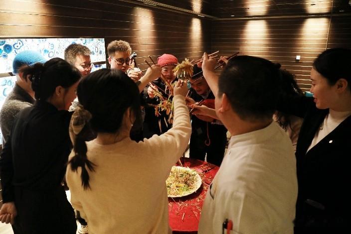 晚宴以一道寓意吉祥的 「鸿运马年捞鱼生」 华丽启幕,以生鱼片搭配五彩蔬果丝,众人同捞拌匀,喊吉祥口彩,寓意新岁风生水起、好运连连。随后,两位主厨的匠心对话正式展开。周俊雄师傅的「低温澳洲扇贝塔塔」 ,以精准的低温处理锁住扇贝的鲜甜,搭配鱼子酱的咸鲜与蜜豆的清脆,口感层次分明,清新灵动。与之呼应,钟锦尚师傅则以一盅 「陈化花胶炖花菇」 诠释中式汤品的醇厚。汤底选用经过足期陈化的深海花胶,胶质丰腴,与历经自然晾晒、菌香浓郁的深山花菇一同慢炖,汤色金黄,滋味醇和绵长,体现了粤菜炖汤温润滋补的饮食哲学。