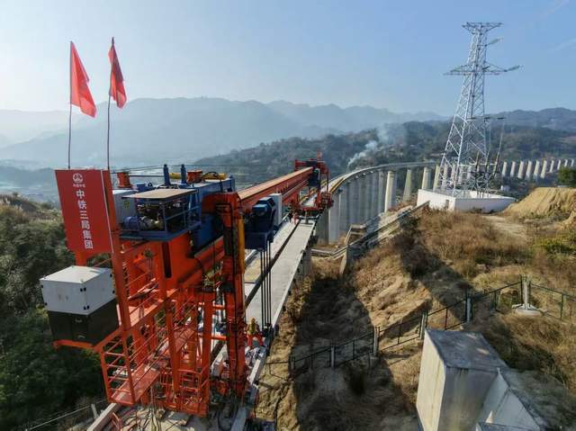 茅坪港疏港铁路是国家重点建设项目、国内首条具备翻坝转运功能的货运铁路,线路全长39.59公里,设计架设T梁698片,沿线山高谷深、地形复杂,需穿越13座隧道、29座桥梁,面临高墩架设、300米小曲线半径架梁、临近既有线作业等多重高风险挑战,施工及协调难度大。