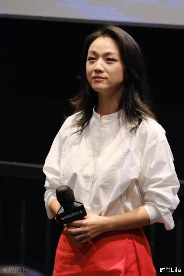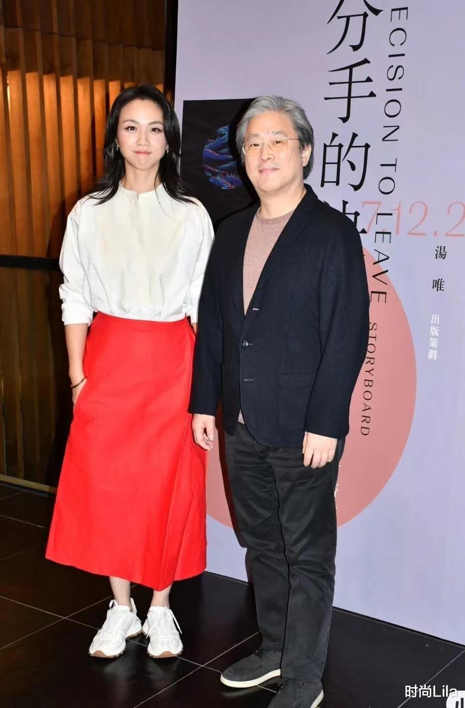 汤唯现身香港首映礼,白衬红裙美如出水芙蓉,44岁活出了24岁模样