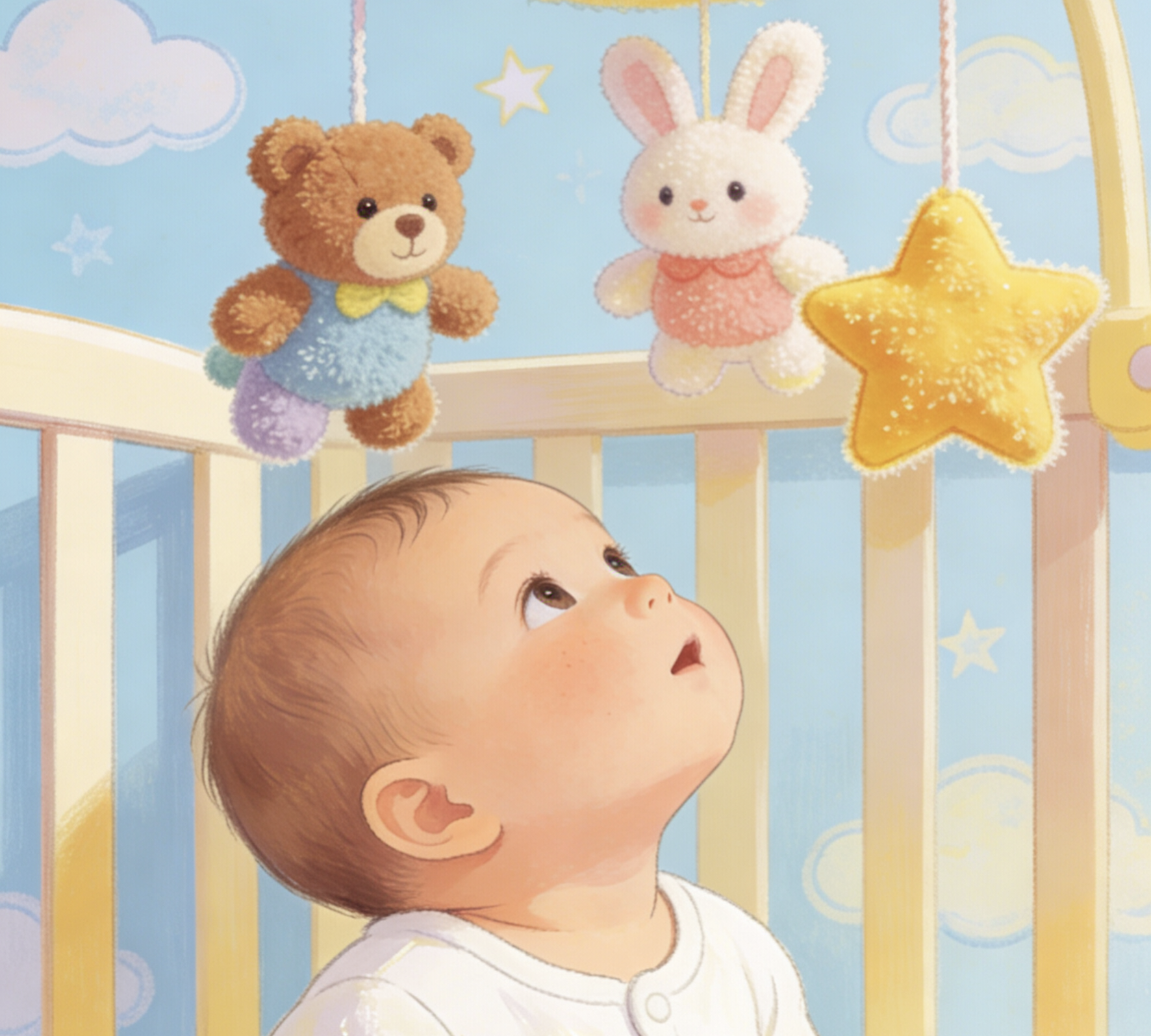 为了哄娃、锻炼追视,不少家长在婴儿床正上方、床头一侧,悬挂床铃、气球、毛绒玩具等,而且一挂就是几个月不换位置。宝宝的视线会长期固定聚焦在同一个点,眼部肌肉持续处于紧张、僵硬的状态,无法灵活调节,会导致角膜受力不均,进而诱发散光,还可能造成斗鸡眼、斜视。