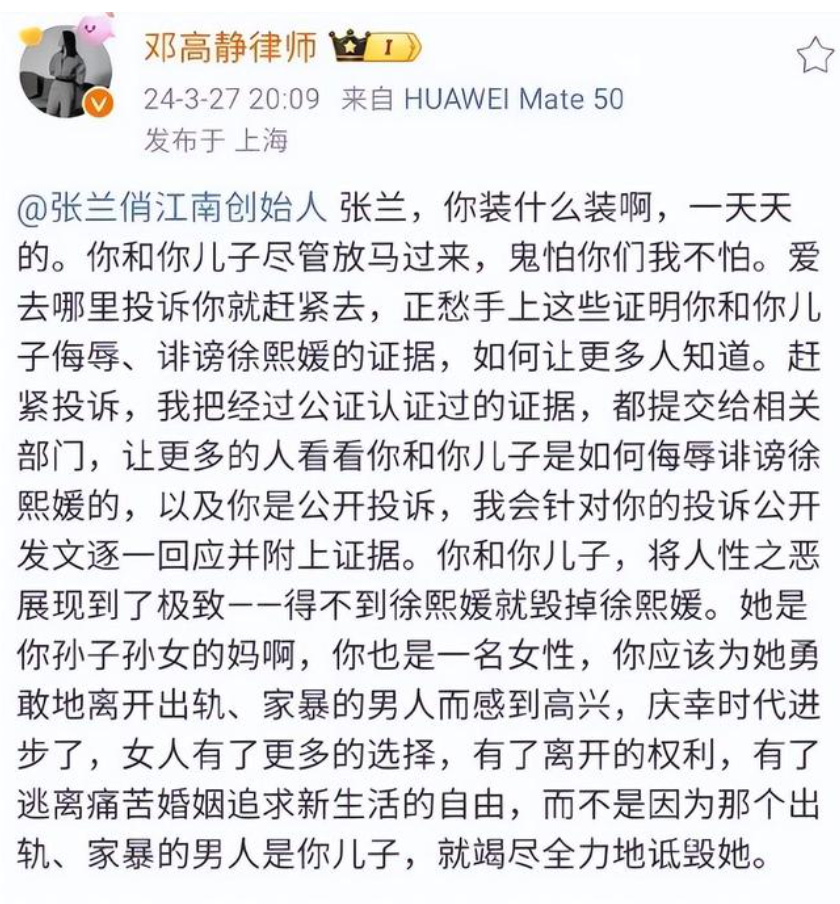 大S的律师发表长文,对张兰的指控进行了全面的反击。他们回应张兰在视频中晒出的投诉信,表示会公开发文逐一回应。律师明确表示,他们的目的就是要揭露张兰和汪小菲的阴谋,保护大S的合法权益。这场反击引发了一场网络热议,网友纷纷为律师的勇敢点赞,同时也对张兰的行为表示质疑。