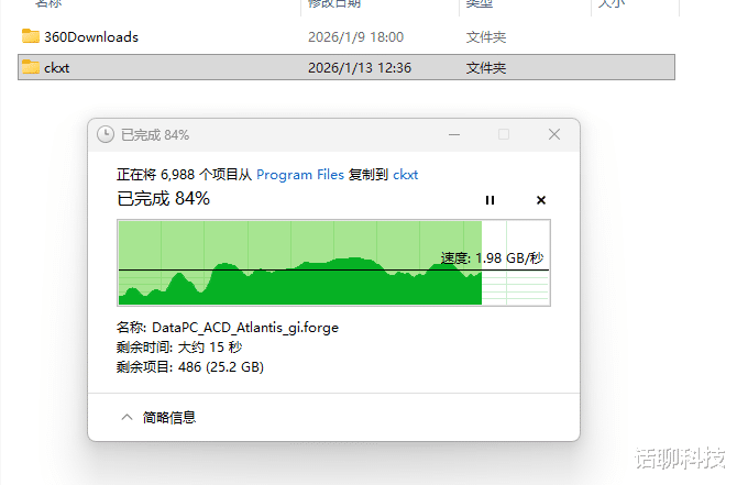 对于其文件拷贝速度,我也实际进行过测试,从盘到盘的游戏绿色包对拷测试实测,拷贝100GB大小的文件包,包含超过50000个小文件,实测拷贝速度也就1分钟左右,确实非常快。如果是拷贝4K电影之类的大文件,基本能达到3GB/s的实际速度,也就是1TB的硬盘,基本上5分钟就能放满。