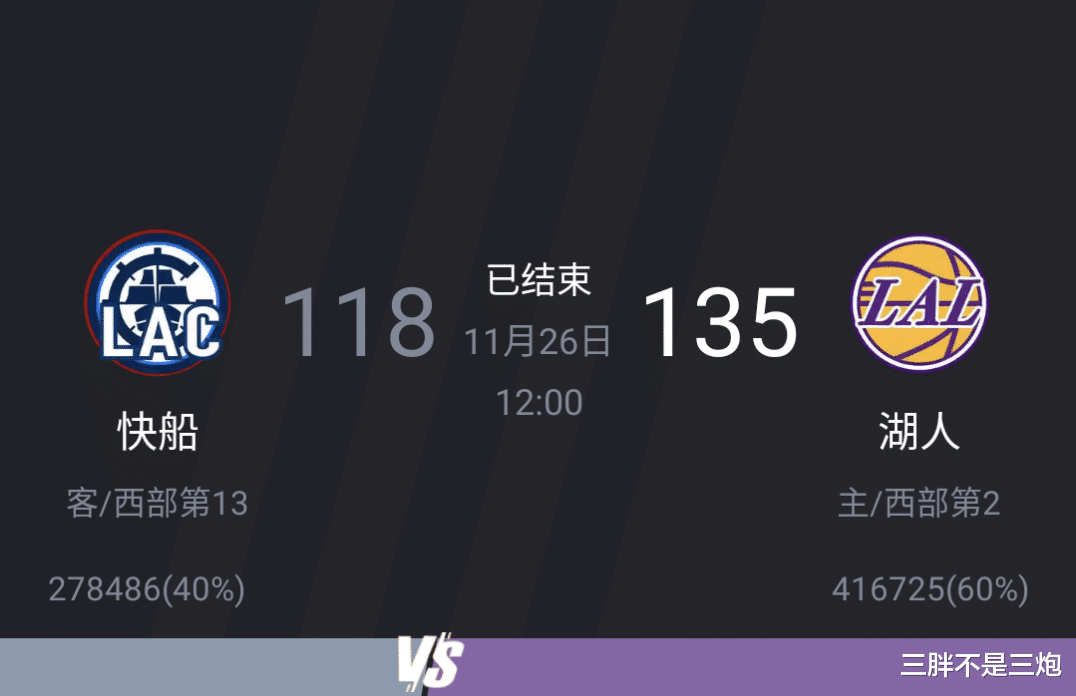 洛杉矶快船118:135 洛杉矶湖人(NBA杯西部B组小组赛)
