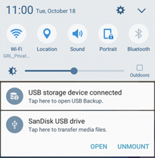 步骤 2. 屏幕上会显示“USB 存储设备已连接”的通知。如果未连接,您可以点击 USB 驱动器查看更多选项,然后选择“传输文件”。