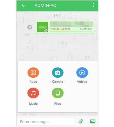 步骤 4. 在Android设备上的 AirDroid 应用中,导航至“传输”部分。选择您的电脑设备,然后点击“照片”图标选择您的照片。接着点击“发送”。您将在电脑上收到照片。