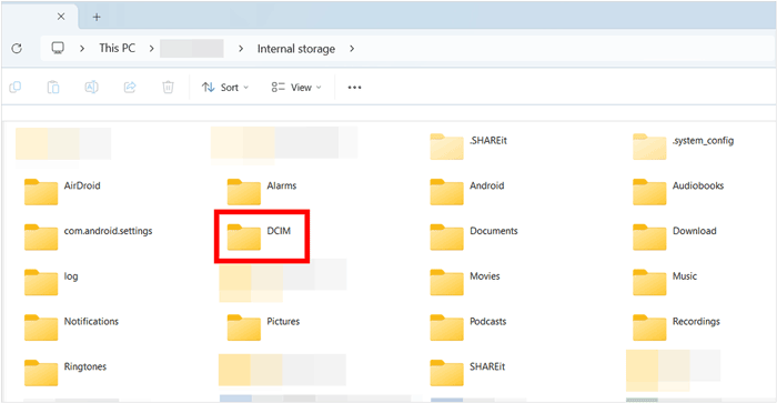 步骤 4. 进入手机的内部存储,找到 DCIM 文件夹,然后打开它。