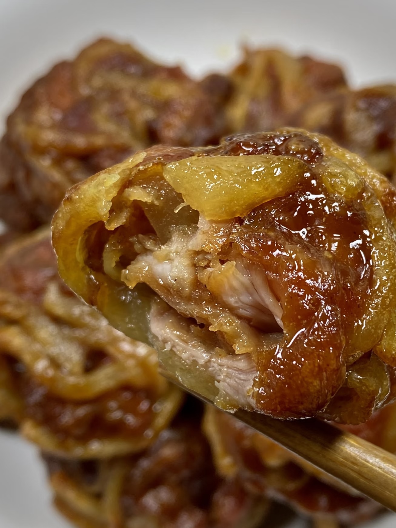 下一步是“组装飞碟”:取一片半熟土豆,表面撒一点点干淀粉,像给土豆铺“防滑垫”,再放一小团鸡丁,约硬币大小,轻轻压平,再盖一片土豆,用手掌“温柔一压”,排出空气,边缘捏紧,一个“土豆夹”就完成了。如果怕散,可以在边缘抹一圈蛋液,像给飞碟涂“胶水”。全部夹好后,像小行星排队,表面再刷一层薄油,待会儿煎的时候才能“金光闪闪”。