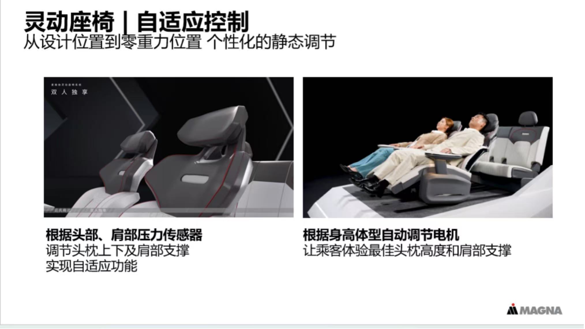 如何让畅想落地成为现实,让原本固定的座椅真正 “灵动” 起来,打破空间的束缚?麦格纳的两大支柱能力,即座椅结构设计和智能控制技术,发挥了关键的作用。
