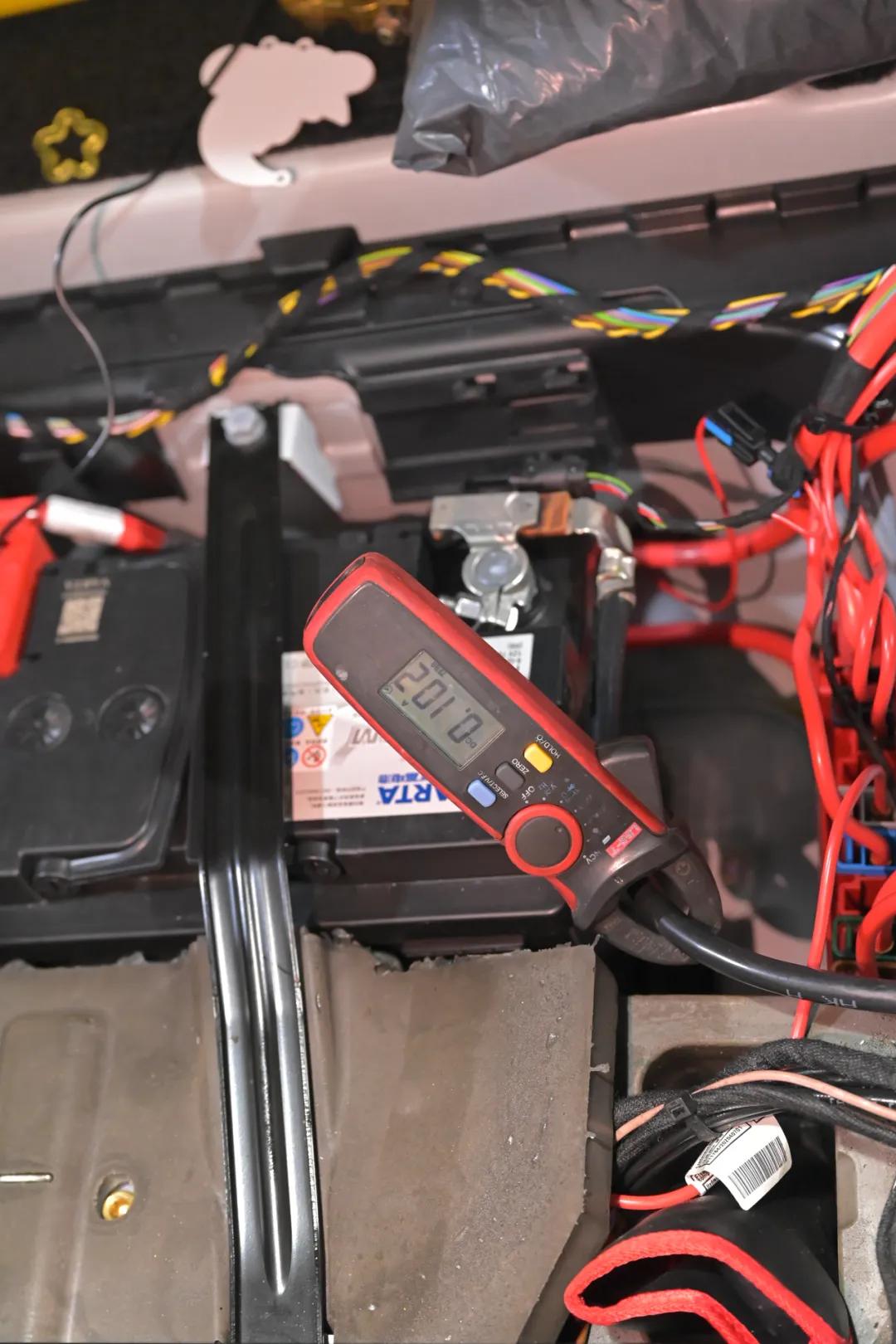 在电瓶正极接上万用表测蓄电池电流,通过读数可见休眠电流过大。