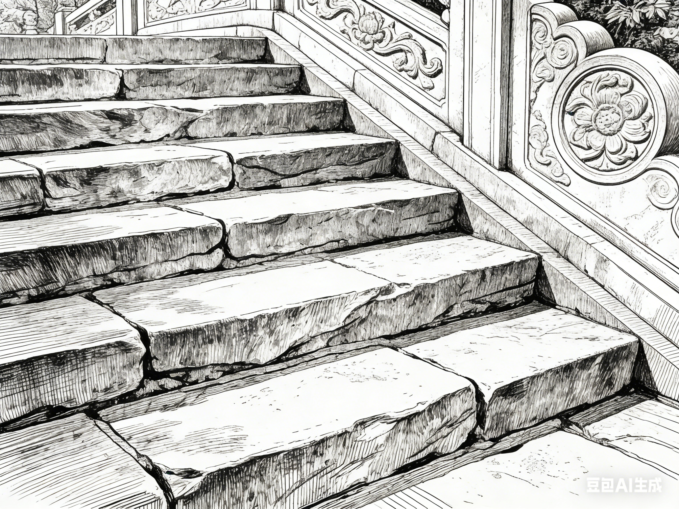 白描线描不仅能再现古建园林的当下形态,更能捕捉其岁月沉淀的时空韵味。笔墨的质感变化,可传递建筑的年代感与历史感,让画面超越二维空间,承载时间的厚度。这种时空维度的表达,让白描线描作品不仅是园林的写照,更是历史的记录。