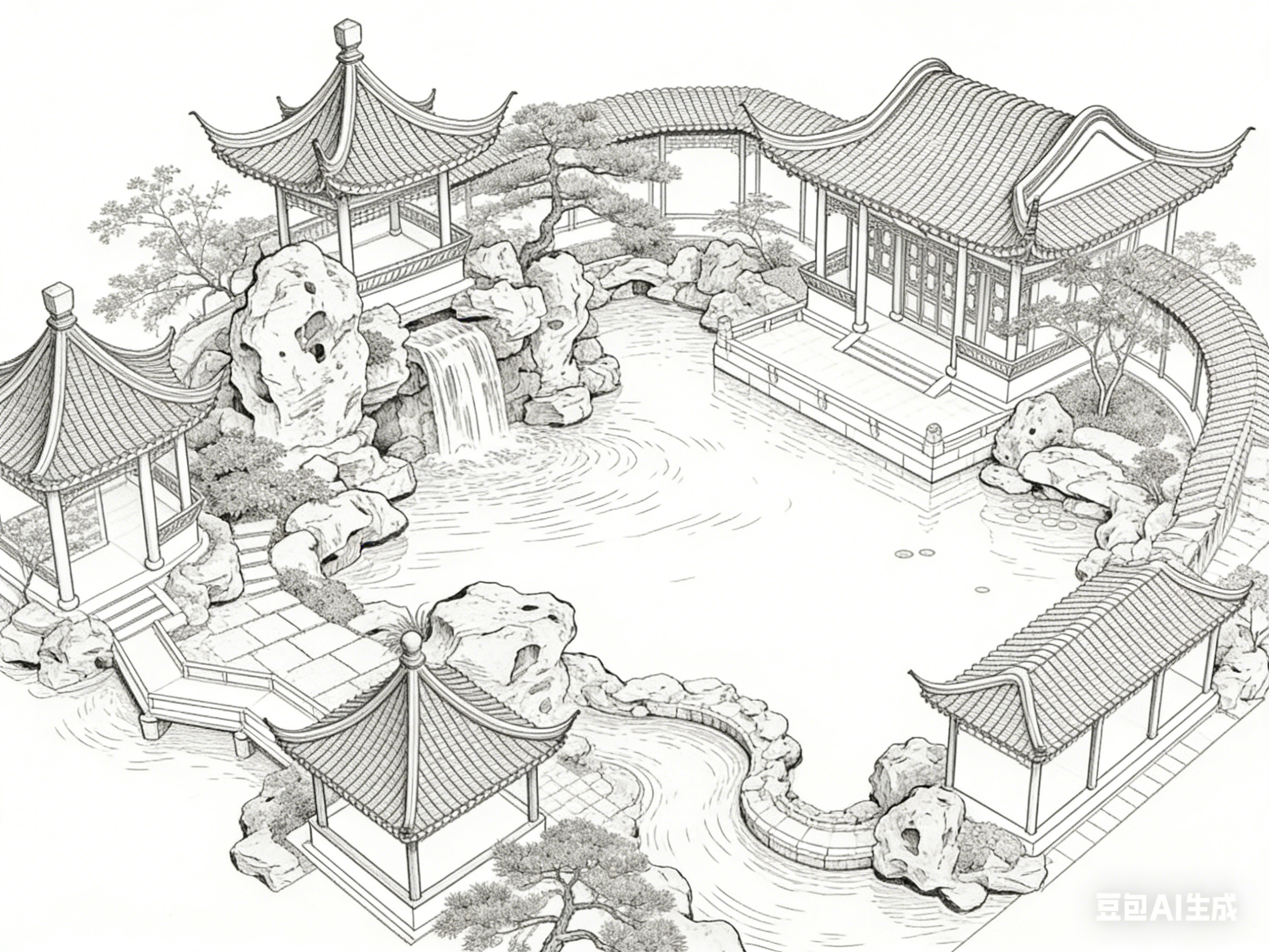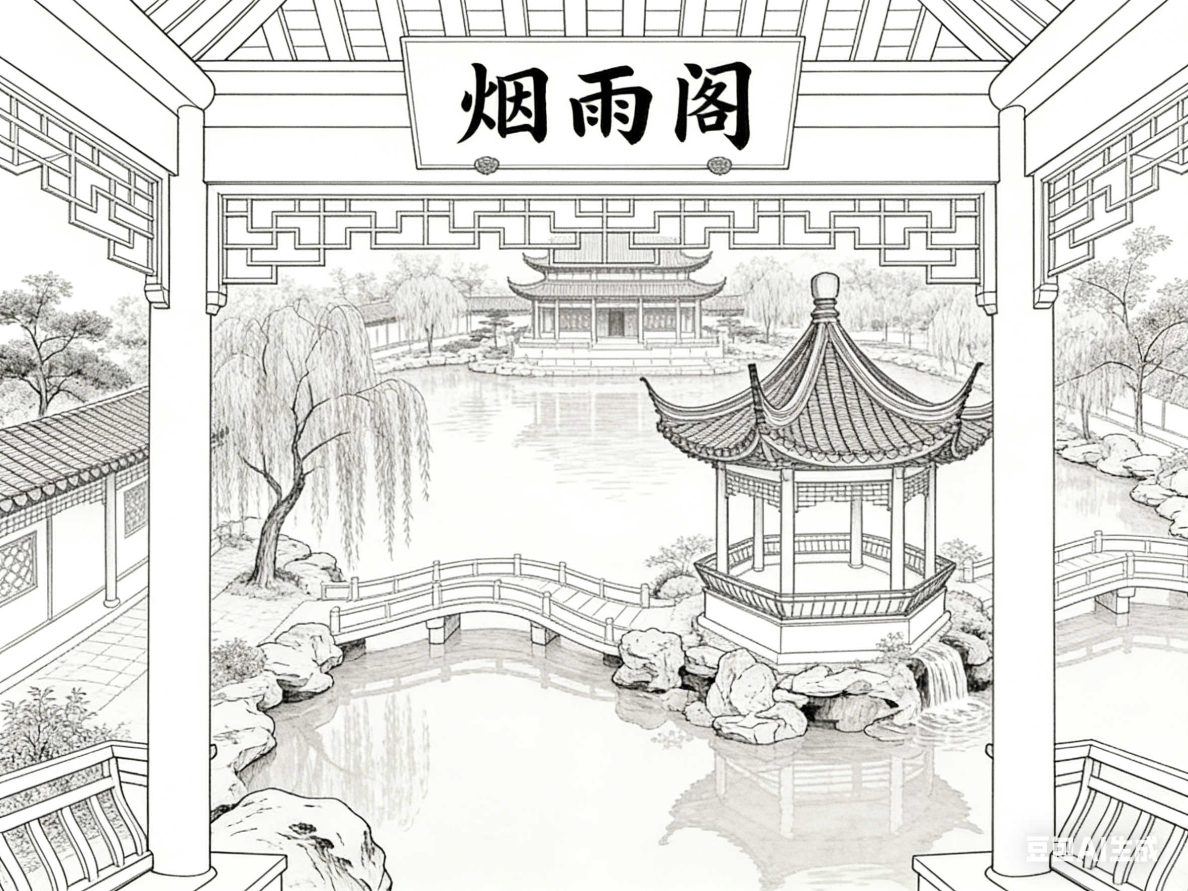 笔墨不竭,园林永恒。白描线描中的古建园林,既是对过往岁月的回望,也是对未来美学的启示。它提醒我们,传统不是僵化的遗产,而是可以不断激活的精神资源;东方美学不是遥远的概念,而是可以融入生活的审美追求。愿这种笔墨与园林的共生之美,能在当代继续传承发扬,为人类文明注入独特的东方力量。
