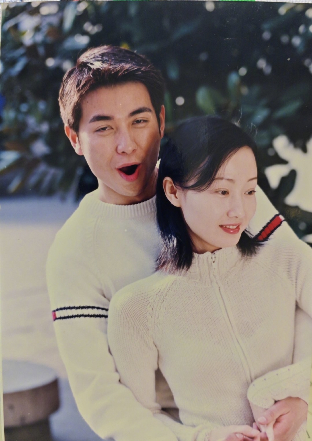 首先她公开了两张和保剑锋在2000年拍摄的亲密合照。照片中,保剑锋从背后抱住她,笑得非常开心!