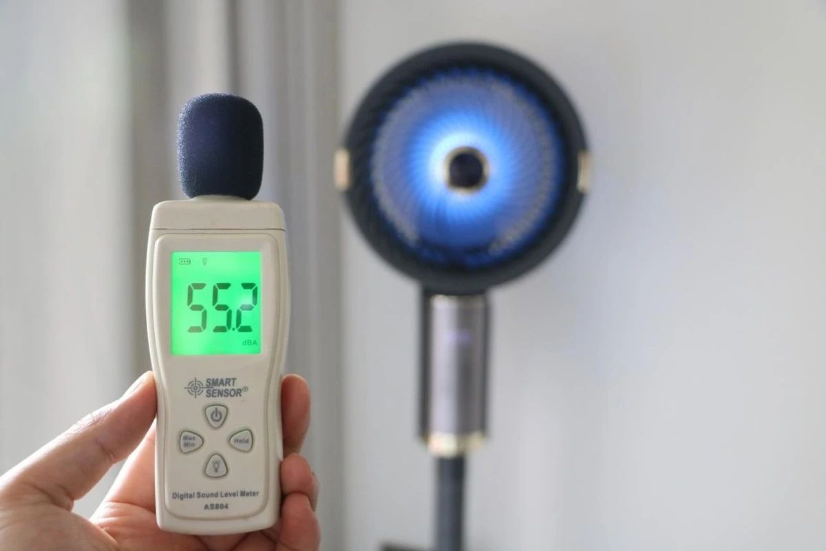 实测环境噪音32dB时:1-3档:噪音≤23dB,贴近才能听到微弱风声(出风口实测数据,扣除室内环境噪音后数据,出风口2米外噪声降低一半)。8档全开:噪音仅38dB,低于普通空调内机声。