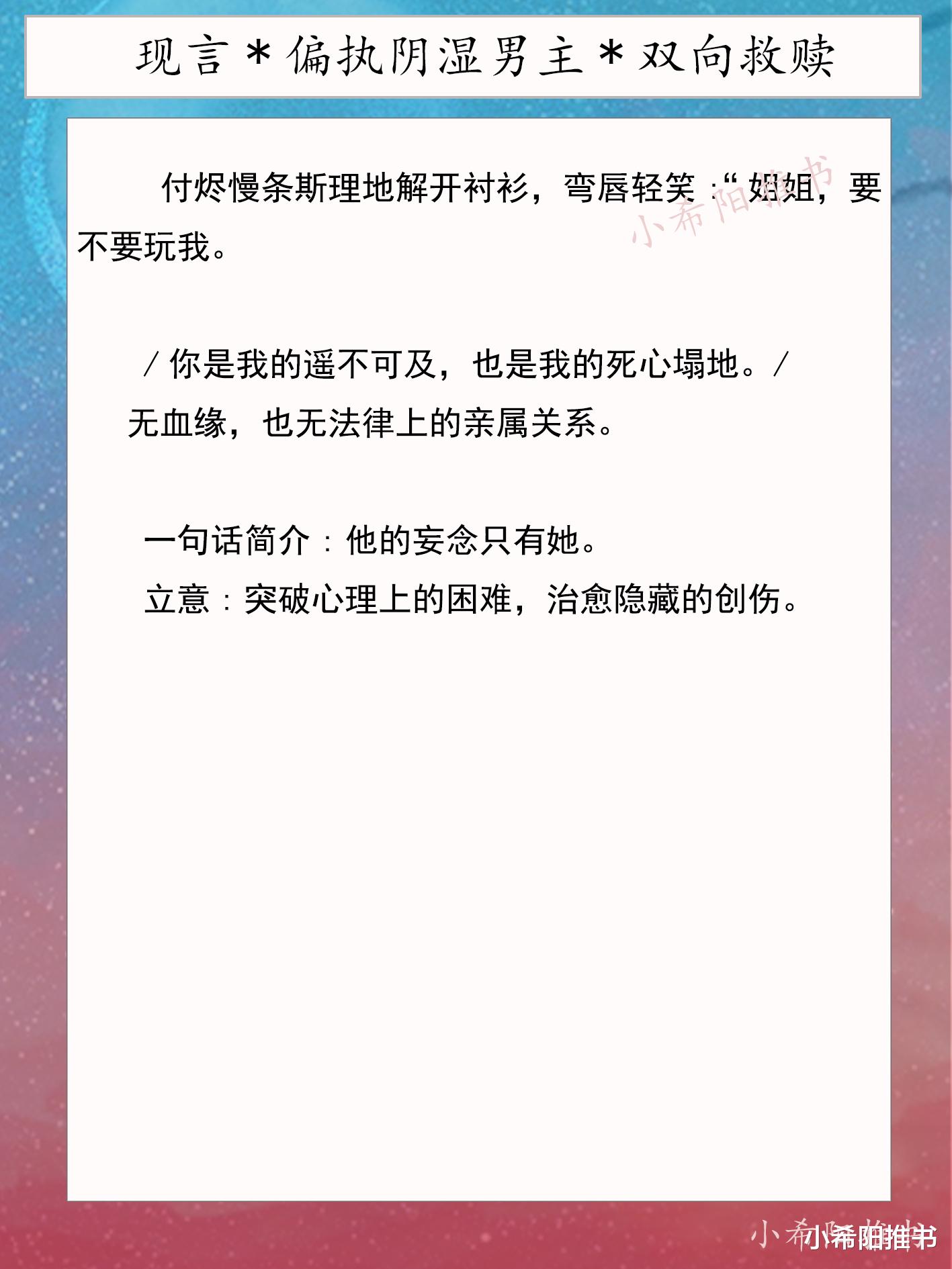 今天推荐一本男主偏执阴湿文,也属于双向救赎文。他的妄念只有她,男主患有严重的心理疾病,遇上女主之后,他偏执阴暗的世界终于有一丝丝亮光,后来更是满心满眼只有女主。