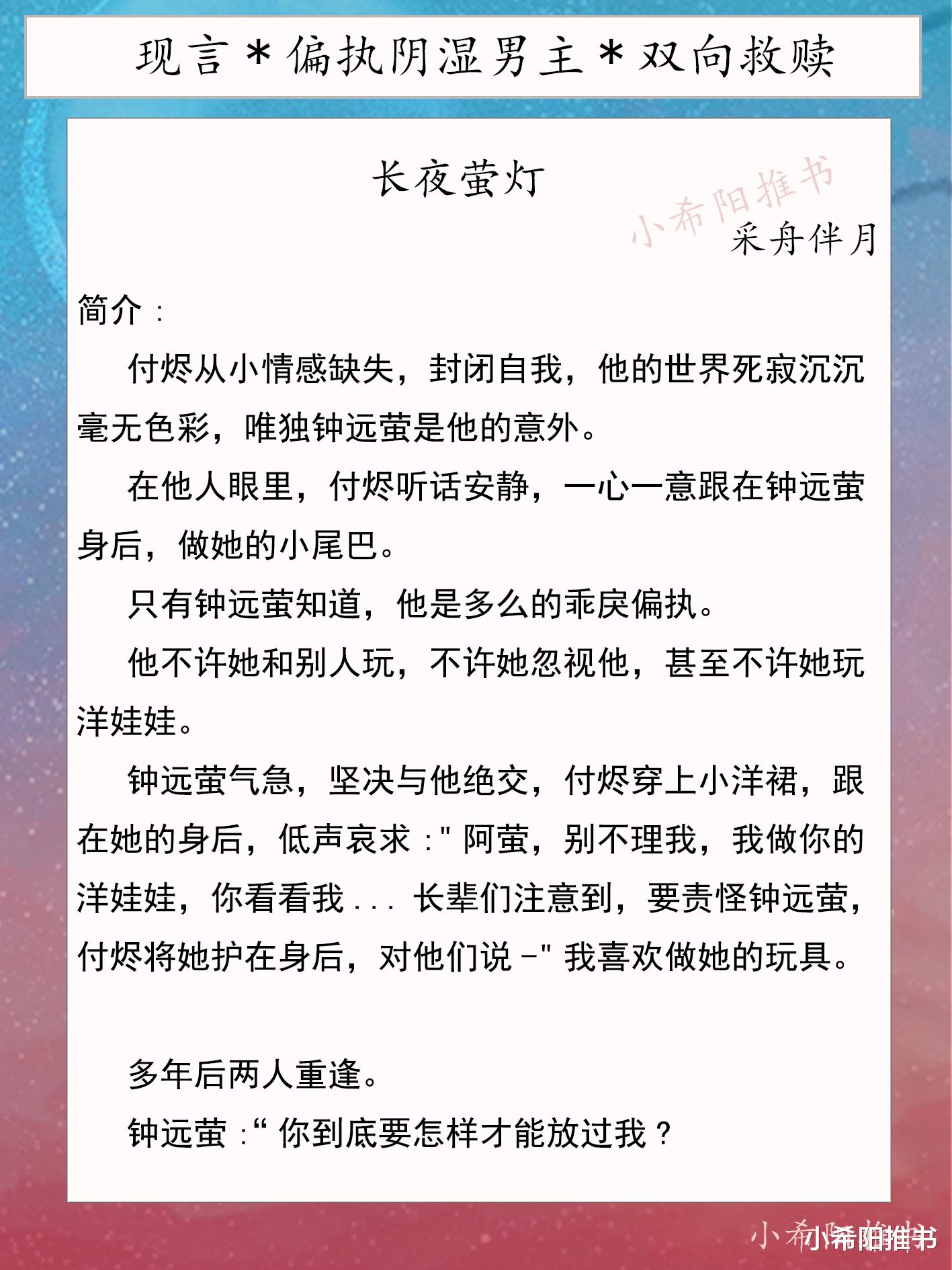 《长夜萤灯》这本小说属于双向救赎,男主偏执狂,占有欲比较重,目睹父亲去世,患有心理疾病,从此他的世界是黑白的,直到女主的出现。两人没有血缘关系,是重组家庭的孩子。
