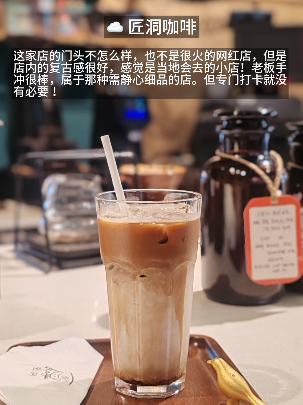 ✔️ 匠洞咖啡:这家店的门头不怎么样,也不是很火的网红店,但是店内的复古感很好,感觉是当地会去的小店!老板手冲很棒,属于那种需静心细品的店。但专门打卡就没有必要 !