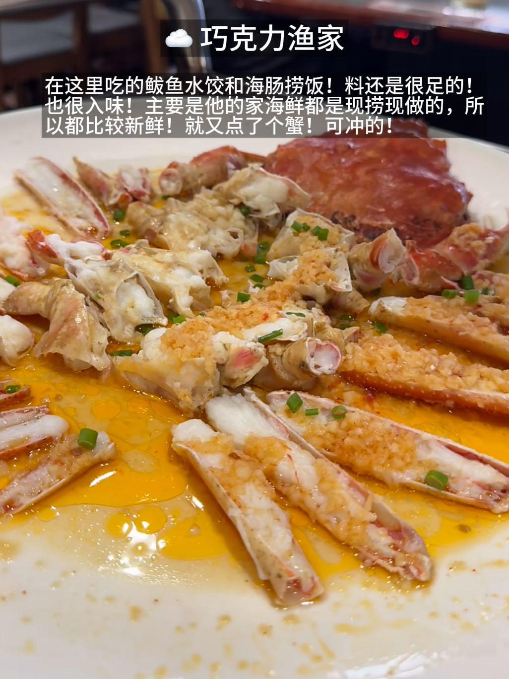 ✔️ 巧克力渔家:在这里吃的鲅鱼水饺和海肠捞饭!料还是很足的!也很入味!主要是他的家海鲜都是现捞现做的,所以都比较新鲜!可冲的!