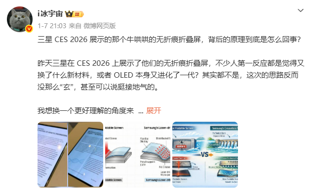 同样是来自供应链的爆料,OPPO Find N6将有望全球首发搭载真正意义上的 “无折痕”可折叠屏幕,据悉这项技术的原理与CES 2026上三星展示的“无折痕”可折叠屏幕技术类似,是通过在屏幕支撑结构上进行精密设计,将“对抗折叠应力”转向“疏导应力”,让折痕在物理层面“无法诞生”。