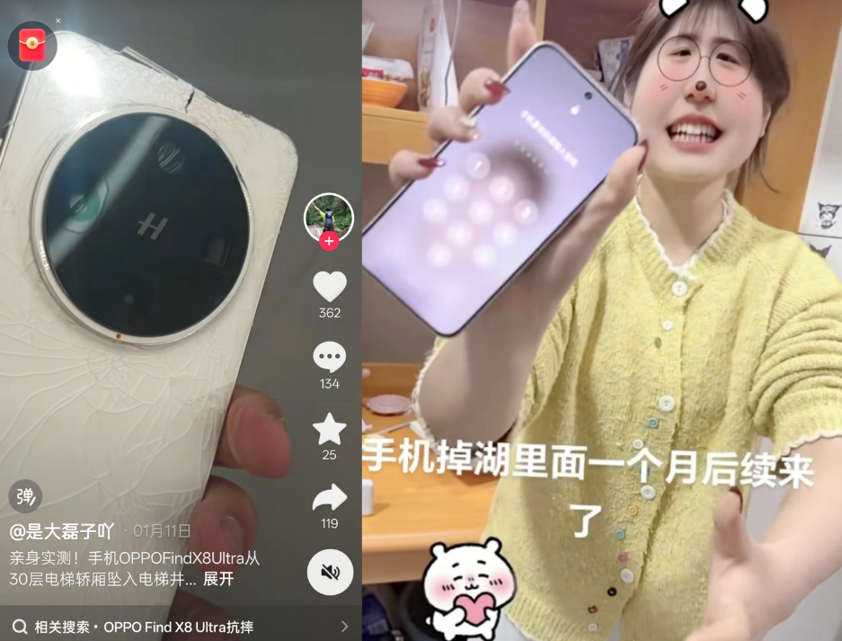 当然了,任何前沿技术没有极致的可靠性作为保障,都如同空中楼阁。而OPPO产品“耐用”的基因,正通过一系列远超常规测试的真实用户案例深入人心:从30层电梯缝隙坠落后仍能通话,到手机在湖底浸泡近一个月后竟可开机……这些看似极端的“品质神话”,为OPPO Find N6的可靠性提供了最令人信服的预期。