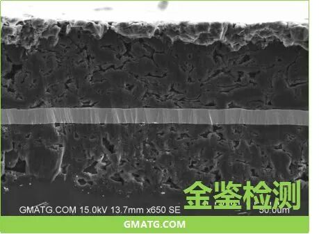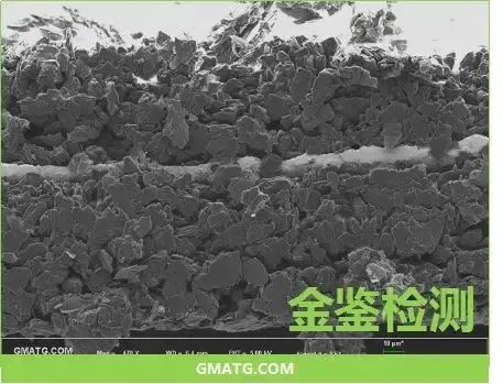 1.石墨极片的氩离子抛光截面制样某石墨生产厂家委托金鉴实验室对其石墨极片进行氩离子抛光截面制样。通过氩离子抛光技术,可以清晰地观察到电极材料涂片的内部结构。抛光前,由于样品是用剪刀剪切而成,截面上的损伤层较大,无法看清真实的内部结构。