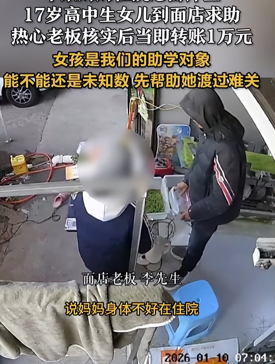 最近他的店里来了一位特殊的客人,是一名年仅17岁的高中女生,女生看到老板问的第1句话不是要买什么面条,而是直接向老板借1万块钱。