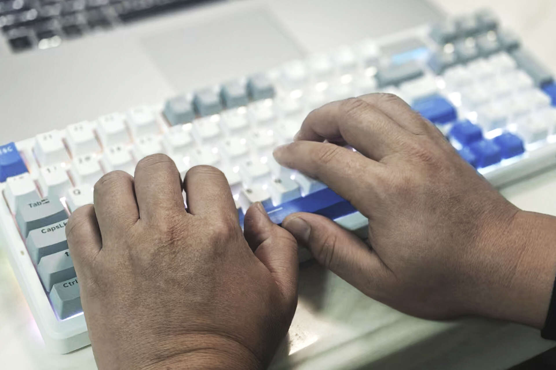 搭载的凯华定制疾速触发轴体堪称点睛之笔,我入手的是弹白轴的触发行程仅1.5±0.4mm,按压反馈清脆,触发速度比常规轴体提升明显,配合适中的段落感,既能满足游戏时的快速响应需求,也能兼顾办公打字的舒适度。
