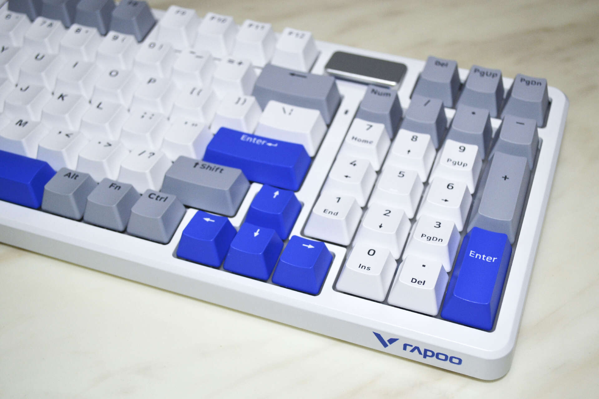 V700DIY-98长续航版键盘采用98配列布局,在保留核心按键的同时,大幅缩减了键盘体积,既节省桌面空间,又能让鼠标活动范围更充裕。键盘的键帽高度与键程搭配合理,按键回弹力度适中,长时间打字或游戏后,手腕不易产生疲劳感,兼顾了竞技手感与日常使用的舒适度。