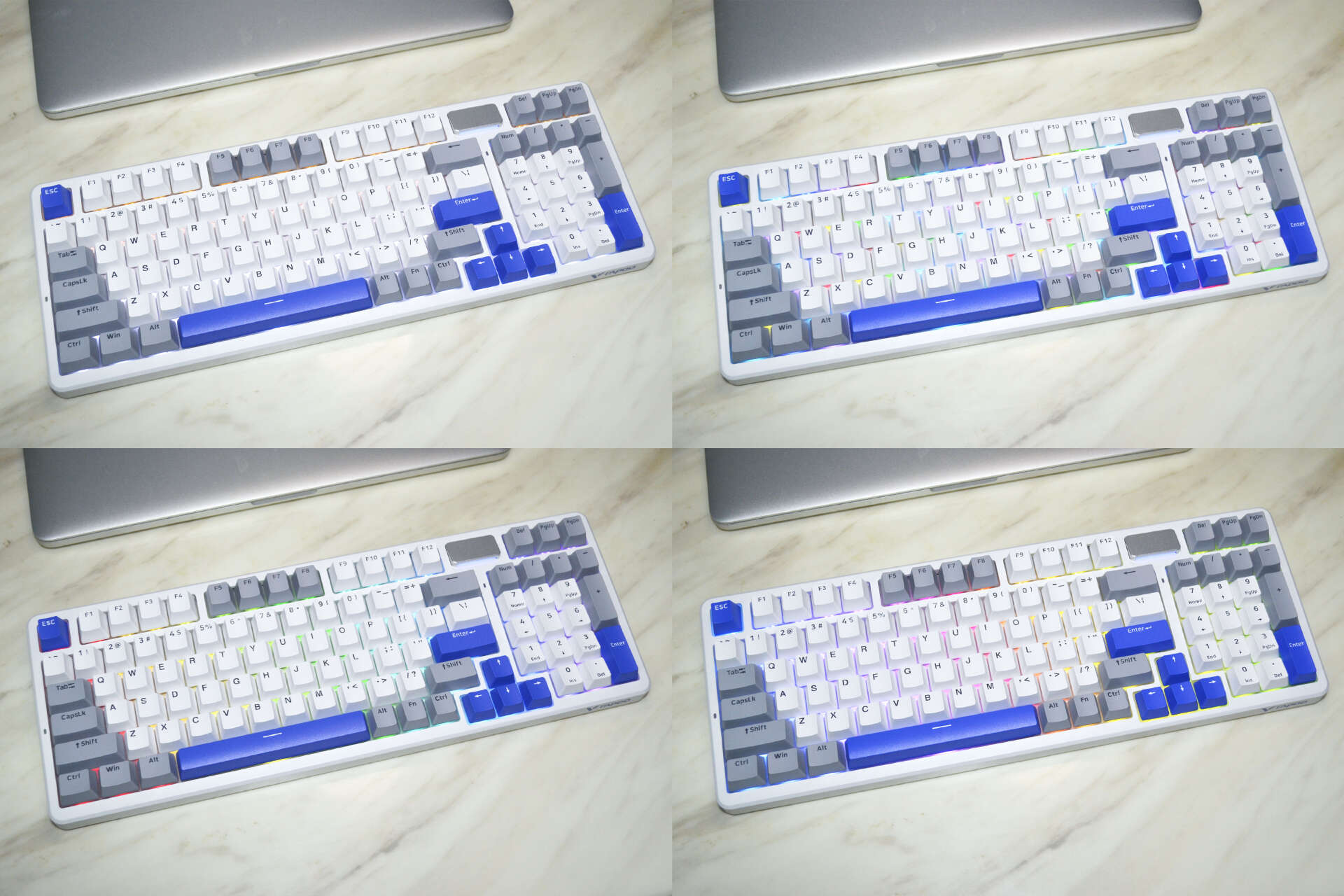 除了硬核性能,这套套装在灯光设计上同样诚意满满,为桌面增添十足电竞氛围。V700DIY-98长续航版键盘搭载幻彩RGB按键背光,预设19种丰富背光模式,涵盖呼吸、流光、涟漪等多种经典效果,无需手动设置即可快速切换,轻松打造专属桌面氛围。同时支持8组驱动自定义背光模式,玩家可通过驱动软件自由绘制灯效路径、调节色彩组合,实现全场景个性化定制。