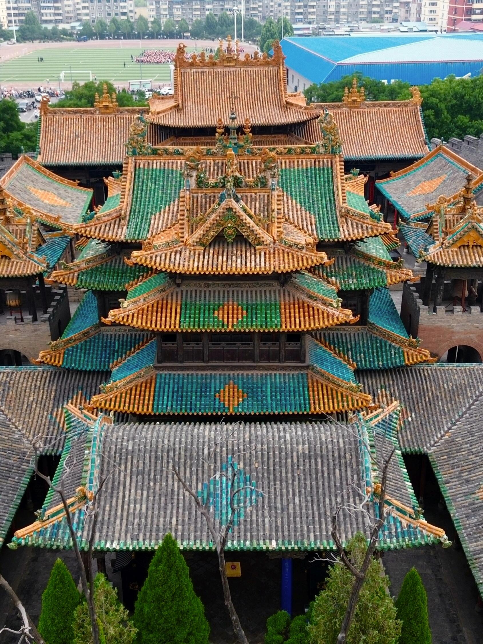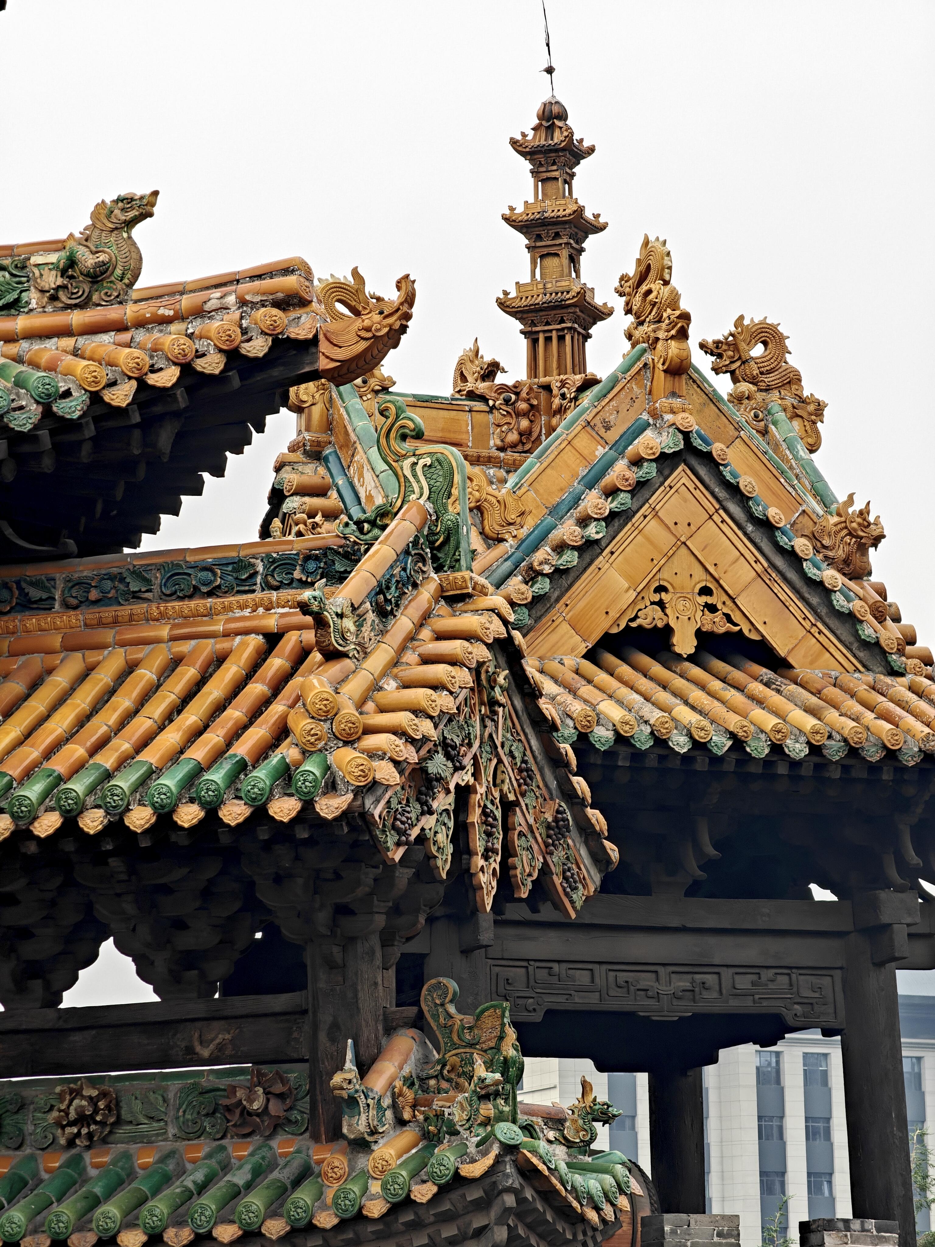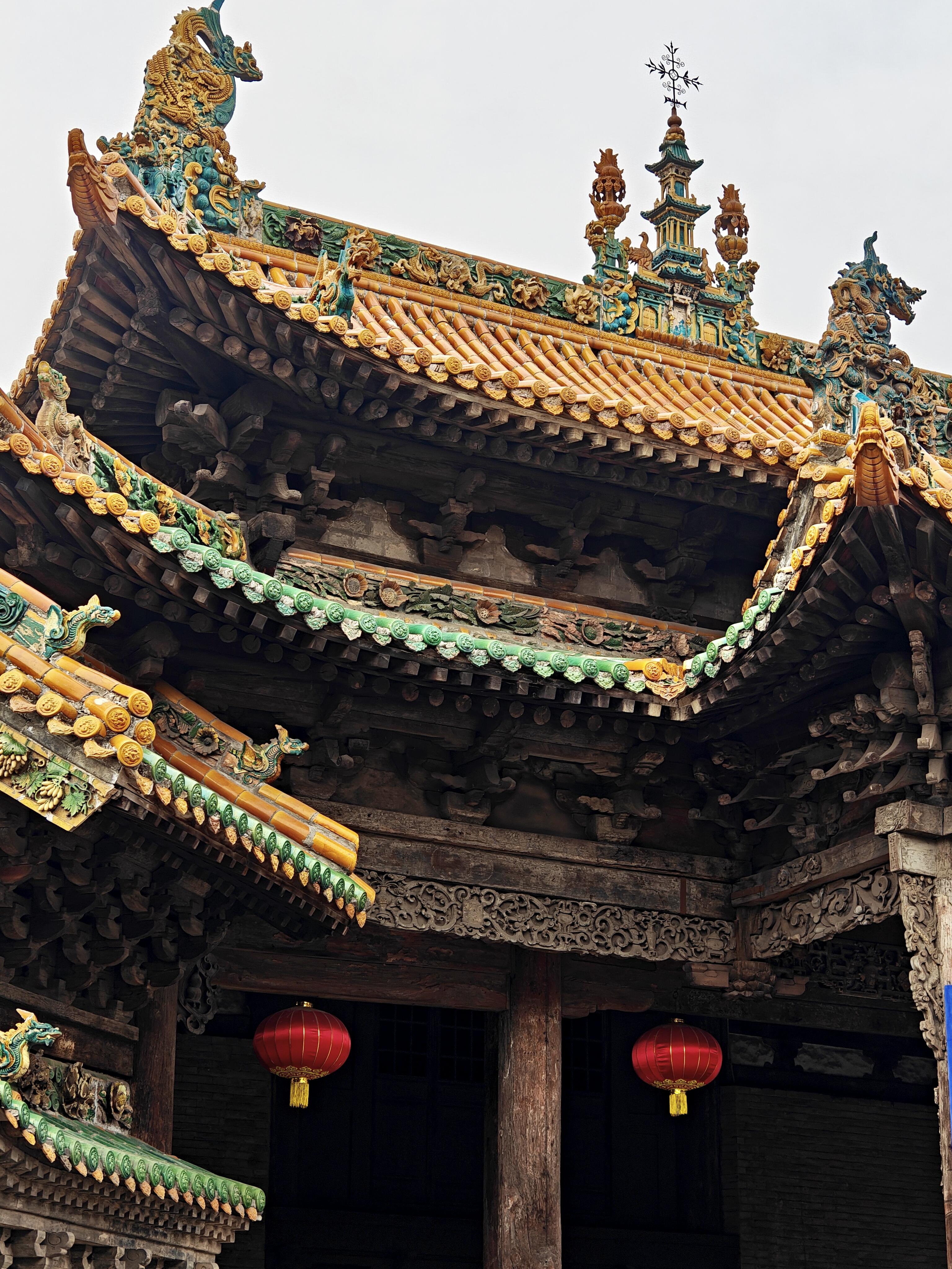 站在介休老城的巷陌深处抬头望,那片刺破天际的琉璃顶总让人恍惚——黄绿蓝三色瓦当在阳光下炸开金箔般的光,像被打翻的调色盘泼