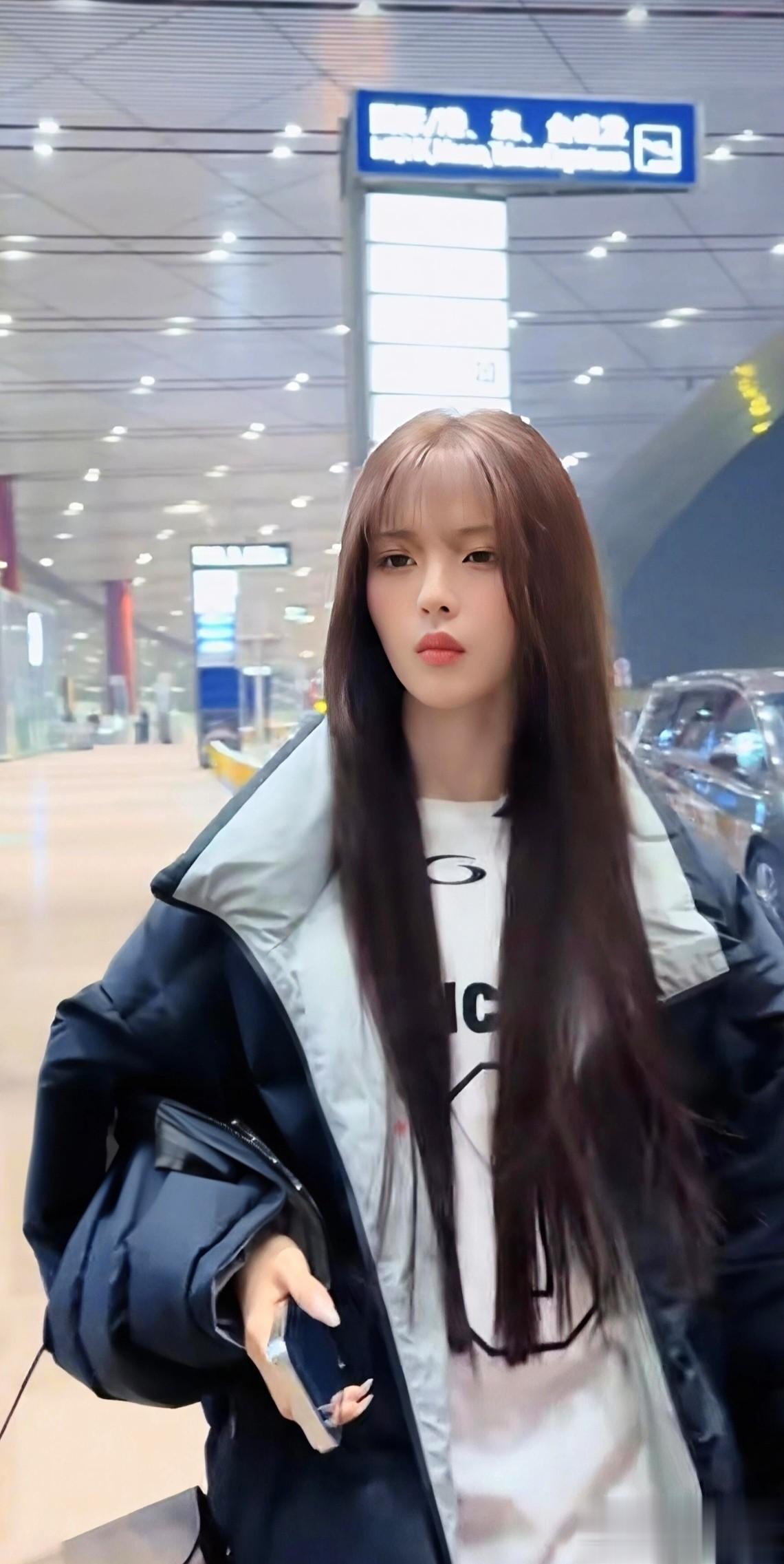 精致的五官和一头光泽的栗色长直发,从头美到脚。