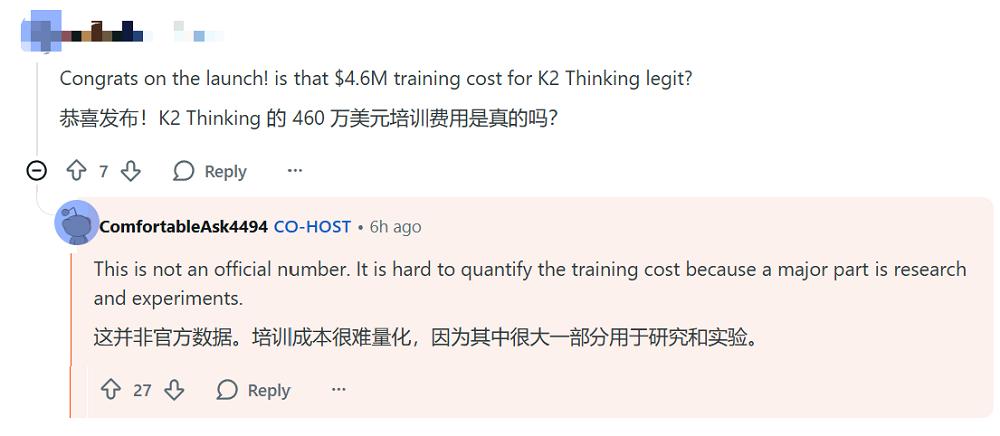 智东西11月11日报道,今天凌晨,月之暗面核心团队在社交媒体平台Reddit上举行了一场有问必答(AMA)活动,月之暗面联合创始人兼CEO杨植麟等人在Kimi K2 Thinking模型发布后不久,正面回应了模型训练成本、跑分与实际体验差距等热点议题。